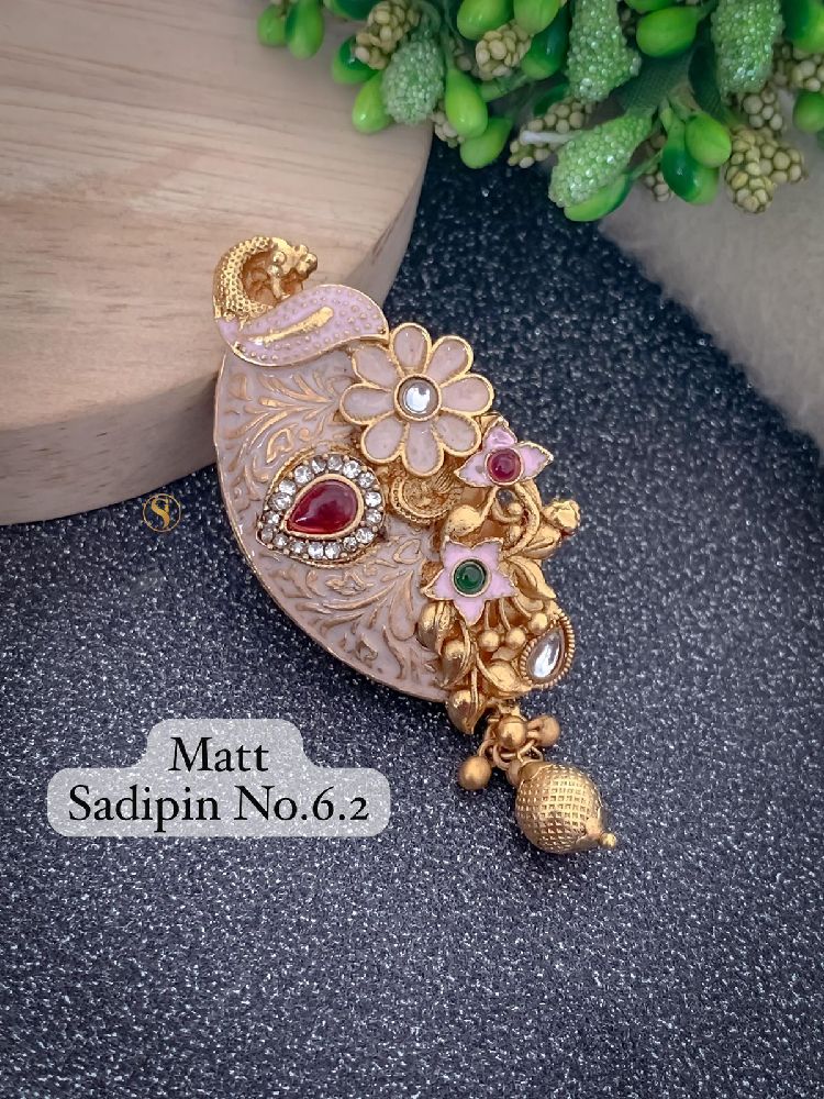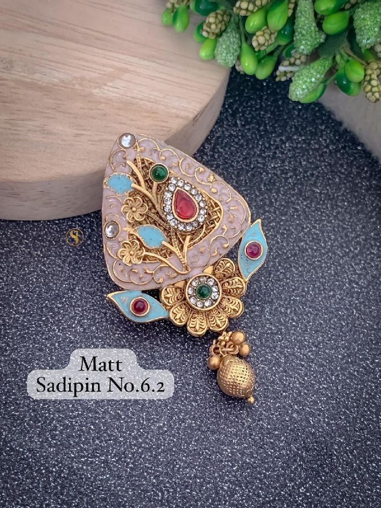 This elegant saree pin is the perfect accessory to add a touch of glamour to your traditional attire. Crafted with intricate details and embellishments, this pin will beautifully complement your saree. Whether you're attending a wedding or a festive occasion, this saree pin will add a touch of sophistication to your look. Made with high-quality materials, this pin is durable and long-lasting. Elevate your ethnic ensemble with this stunning saree pin and make a statement wherever you go.